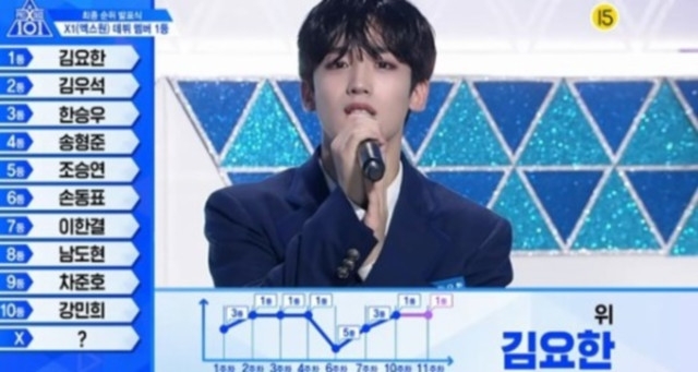 19일 생방송으로 진행된 최종 순위 발표식에선 데뷔 멤버 11명이 결정됐다. 데뷔 그룹의 이름은 '엑스원'(X1)으로 공개됐고, X1의 센터로 활동할 1위는 김요한(위엔터테인먼트)이 차지했다.