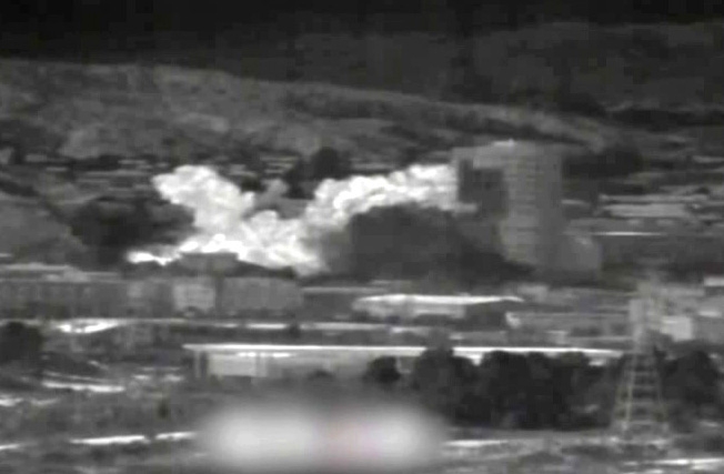 16일 오후 경기도 파주시 접경지대 군 관측 장비에 개성공단 남북공동연락사무소 폭파 모습이 담겼다.  사진=뉴시스이미지 확대보기