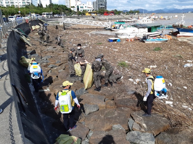 아울러 해양쓰레기로 인한 악취와 해충발생을 방지하기 위해 방역 활동도 함께 전개 중이다.