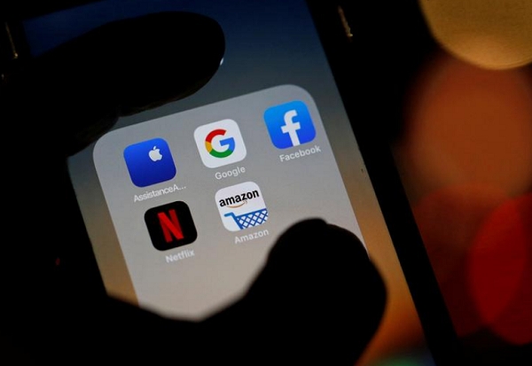 스마트폰 화면상에 나타난 글로벌IT대기업 로고. 사진=로이터
