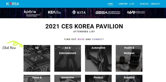 이번 CES 온라인 한국관에는 코트라, KEA, 경기도경제과학진흥원, 한국무역협회울산지역본부, 창원산업진흥원의 지원으로 우리기업 89개사가 참가해 미래 핵심 신기술을 선보일 예정이다.