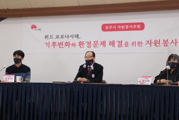 이미지 확대보기사단법인 전주시자원봉사센터(이사장 황의옥)는 5일 포스트 코로나 시대 기후변화와 환경문제를 해결할 자원봉사 실천방안을 모색하는 ‘전주시 자원봉사 포럼’을 개최했다.