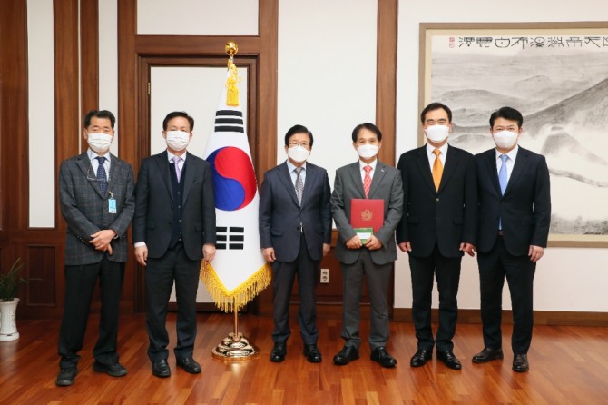 이미지 확대보기이 총장은 이날 서울 여등포구 여의도 소재 국회의장실에서 개최된 국회 과학기술분야 공로상 시상식에서 인공지능과 바이오정보 분야에서 과학기술 발전에 기여한 공헌을 인정받아 국회의장상을 수상했다.