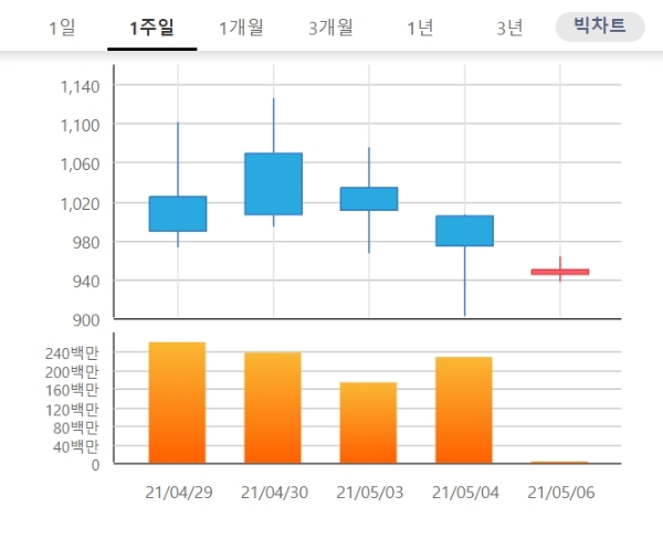 이미지 확대보기6일 한국거래소에 따르면 이트론 주가는 오전 9시 10분 현재 전날 대비 3.90% 내린 936원에 거래되고 있다.