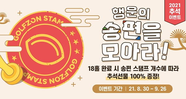 스탬프는 라운드 수와 관계없이 18홀 게임 정상 종료 시 1일 1개 지급되며, 송편스탬프(G스탬프) 개수(10개, 20개, 28개)에따라 골프존파크 이용권, 환급형 마일리지를 100% 증정한다.