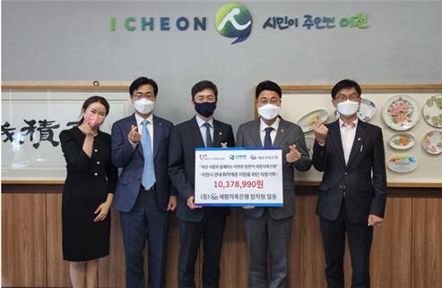 이미지 확대보기코로나19 장기화로 경제적으로 어려운 환경에 직면한 이천지역 취약계층 지원을 위해 전 임직원이 창립기념일에 지급받은 특별상여금의 1%에 회사가 동일금액을 더해 기부한 것.
