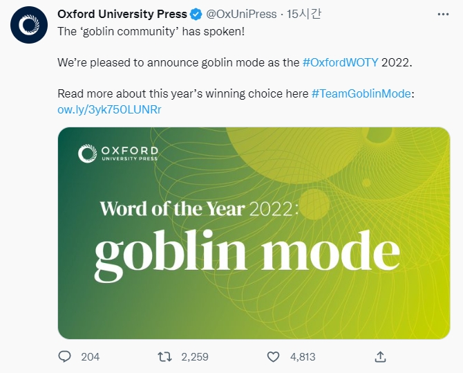 이번 선정에는 30만 명 이상의 사람들이 투표에 참여해 '고블린 모드'를 첫 번째로, '메타버스'를 두 번째 단어로 선택했다.