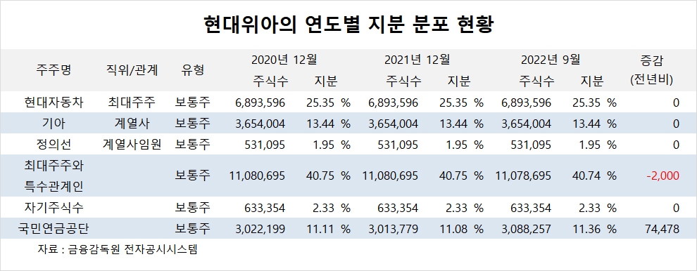 현대자동차의 최대주주는 현대모비스입니다. 현대모비스의 최대주주는 기아입니다. 기아의 최대주주는 현대자동차입니다. 현대차그룹은 아직 순환출자 구조에서 벗어나지 못하고 있습니다.