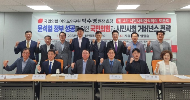 범시민사회단체연합(회장 이갑산, 이하 범사련) 등 시민사회연석회의가 15일 오전 9시 30분 서울 여의도 자유기업원 열림홀에서 국민의힘 여의도연구원 박수영 원장을 초청, “윤석열 정부 성공을 위한 국민의힘과 시민사회 거버넌스 전략”이란 주제로 토론회를 개최했다.