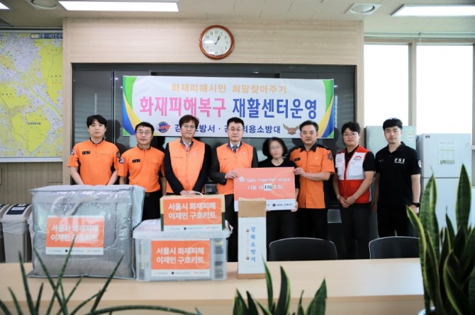 희망브리지 전국재해구호협회와 한화손해보험이 서울 강북소방서에서 갑작스러운 화재로 생활고를 겪고 있는 화재피해 가정에 위로금과 구호 세트 등을 전달했다.