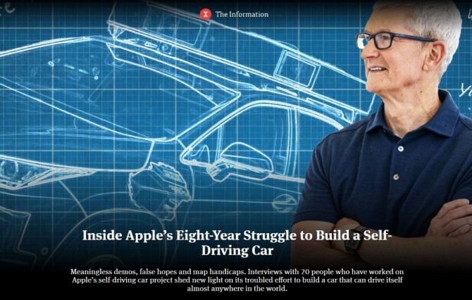이미지 확대보기2022년 12월 보고서에 따르면 애플은 완전한 자율성을 목표로 하지 않고 스티어링 휠을 포함하며 빠르면 2026년에 출시될 수 있다고 알려졌다.