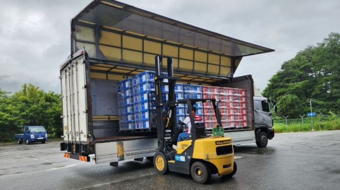 이들 지역에는 응급구호세트 1213세트(2만2393점)를 비롯해 생수 2만8320병, 대피소 칸막이 212개, 장화 572켤레, 박카스 1000병 등 5만2512점이다. 물품은 경남 함양에 위치한 약 3만3000㎡ 규모의 희망브리지 함양 재해구호물류센터에서 출고됐다.