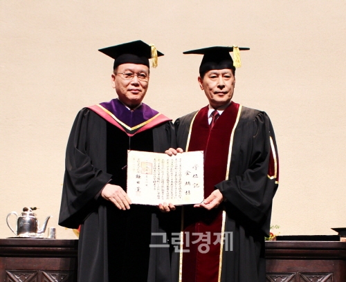김병철 총장은 이날 일본 와세다대의 신입생 입학식에서 학부와 대학원에 새로 입학한 학생 약 900명 앞에서 명예박사학위를 받았다.