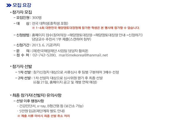 참가를 희망하는 대학생은 다음달 7일까지 한국해양재단 홈페이지를 통해 신청하면 된다.
