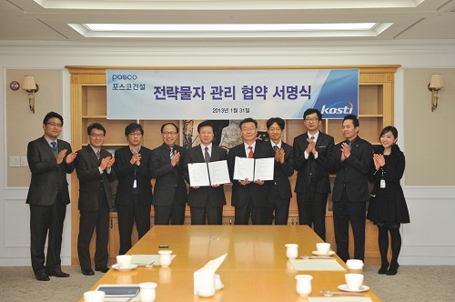 포스코건설 송도사옥에서 열린 이날 협약식에는 전략물자관리원 조관식 수출관리본부장과 포스코건설 이동만 경영지원본부장 등 20여명이 참석했다.