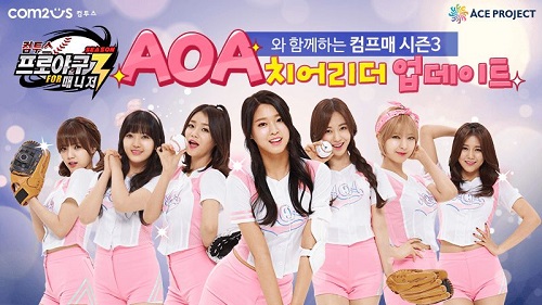 먼저, 이용자는 7명의 AOA 멤버 중 한 명을 선택해 게임 내 메인 화면으로 설정할 수 있다. 게임 메인 화면 하단에 새롭게 추가된 치어리더 버튼을 터치하면 자신이 원하는 멤버를 치어리더로 영입할 수 있으며, 새로운 치어리더 의상을 입고 있는 AOA의 색다른 모습을 확인할 수 있다.