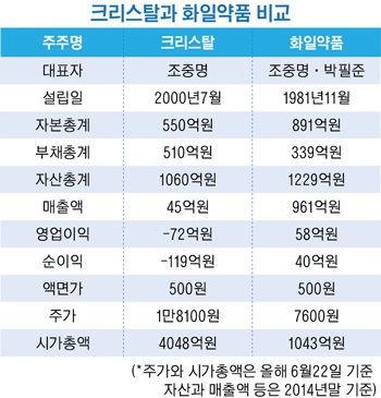 지난 2013년 8월 14일 바이오벤처기업으로 표적항암제 개발업체인 크리스탈지노믹스(크리스탈)가 자신보다 훨씬 덩치가 큰 원료의약품 업체인 화일약품 경영권을 인수한 것도 눈길을 끈다.