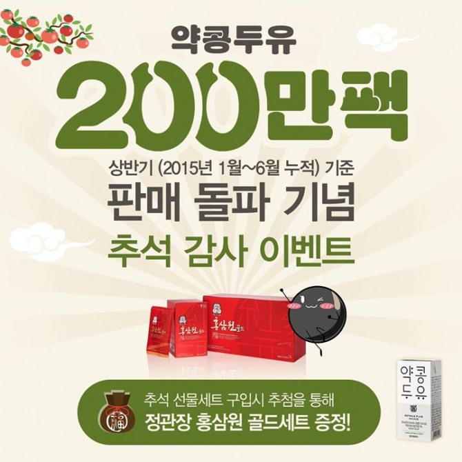 이미지 확대보기◆ 약콩두유, 상반기 200만팩 판매기념 추석 이벤트 ‘정관장 홍삼제품 증정’