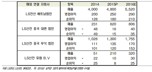 특히 LS전선 베트남과 LS산전의 중국 무석법인 턴어라운드가 이미 올해 시작됐다. 베트남의 전력선 시장이 연 10%이상 고성장이 진행중인 것을 감안하면 기업공개 예정인 LS전선 베트남 법인의 실적이 올해에 이어 내년에도 20%이상 성장이 기대된다.