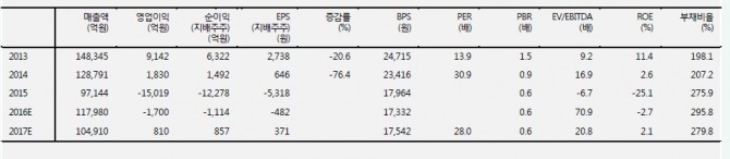 김형근 메리츠종금증권 연구원은 "2016년 지속적인 원가절감 및 해양플랜트 공정 안정화가 관건인데, 해양플랜트의 빈번한 설계 변경과 자재품질 문제에 따른 추가비용 발생이 가능하다"라며 "비핵심 자산매각 및 인력 구조조정에 따른 추가 원가절감이 지속될 것이며 이에 따라 올해보다 2017년 경영 정상화 및 실적 턴어라운드가 시작될 것으로 전망된다"고 말했다.