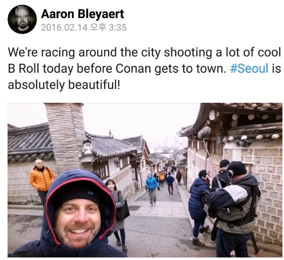한편 코난 오브라이언은 16일 MBC 수목극 '한 번 더 해피엔딩'에 카메오로 출연한다. 이어 18일에는 가수 박진영과 공동 작업을 마친 뒤 19일 출국한다.