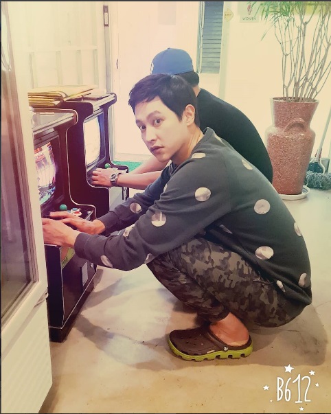 사진 속 송종호는 편안한 옷차림과 신발로 미니 오락기 앞에서 게임을 즐기고 있다가 김혜리의 깜짝 사진 촬영에 흠칫 놀란듯 카메라는 응시하고 있다.