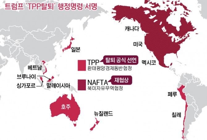 ◇ 첫 행정명령 ‘TPP 탈퇴’…‘대중국’ 통상정책 전 세계로 확대