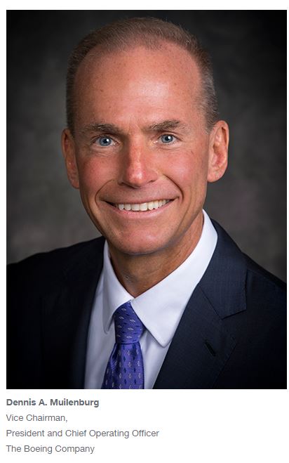 Dennis Muilenburg is vice chairman, president and chief operating officer of The Boeing Company. He also serves on the company's Executive Council. In June, the Boeing board of directors announced that Muilenburg would succeed W. James (Jim) McNerney, Jr., as the company’s chief executive officer, effective July 1.