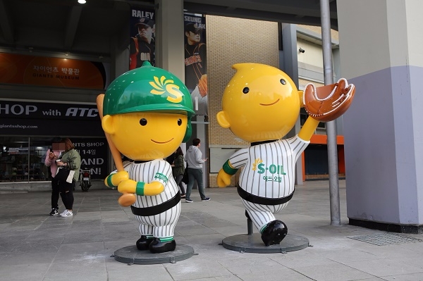 이미지 확대보기에쓰오일DMS 10일 올해 프로야구 시즌 동안 롯데자이언츠 부산 사직야구장에서 구도일 패밀리 조형물을 전시하겠다고 밝혔다.