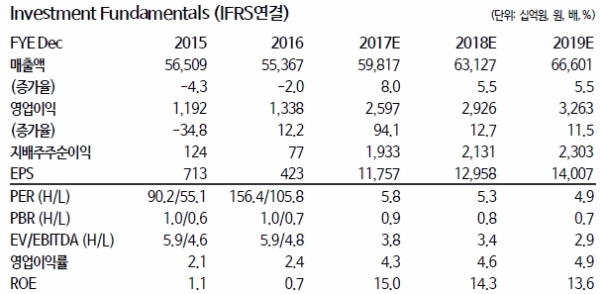 연결 17년 영업이익은 2조2820억원으로 약 83.2% 개선될 전망이다.