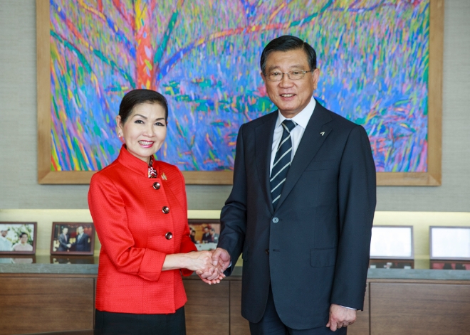 이미지 확대보기금호아시아나그룹은 6일 박삼구 회장이 서울 광화문 금호아시아나그룹 사옥에서 래리 호건(Larry Hogan·61) 미 메릴랜드 주지사의 부인인 유미 호건(Yumi Hogan·58) 여사와 만나 환담을 나눴다고 6일 밝혔다.