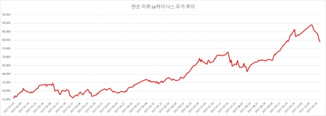 SK하이닉스가 지난해 2분기 이후 메모리 가격 상승에 따른 호실적에 주가가 200% 이상 올랐지만 이제는 상승여력이 얼마 남지 않았다는 게 CLSA의 설명이다.