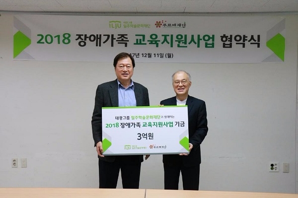 한편 일주재단은 세상에 따뜻한 빛을 비추는 태광그룹 나눔 정신에 발맞춰 2012년부터 그룹홈 아동 성장멘토링 교육지원사업을 운영하고 있다. 이 재단은 향후 5년간 장애가족 교육지원사업을 지속해 복지 사각지대를 발굴, 지원하는 공익재단으로서의 역할을 충실히 해나갈 계획이다.