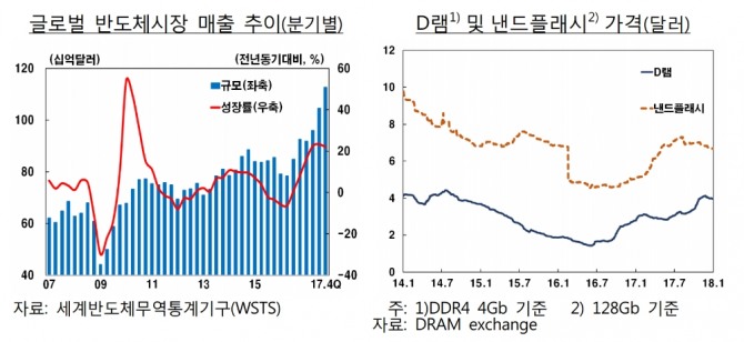 한국은행은 9일 해외경제 포커스를 통해 "2016년 하반기부터 시작된 D램 주도의 호황국면이 내년 상반기까지 이어질 것"이라고 밝혔다.