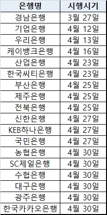 시행시기는 은행마다 다르다. 경남은행의 경우 이미 지난달 27일 연체가산금리를 3%대로 내린 상태다.
