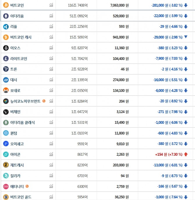 美 법무부 가상화폐 가격조작 혐의 수사... 비트코인 700만원 아슬아슬, 아이콘만 상승 왜?
