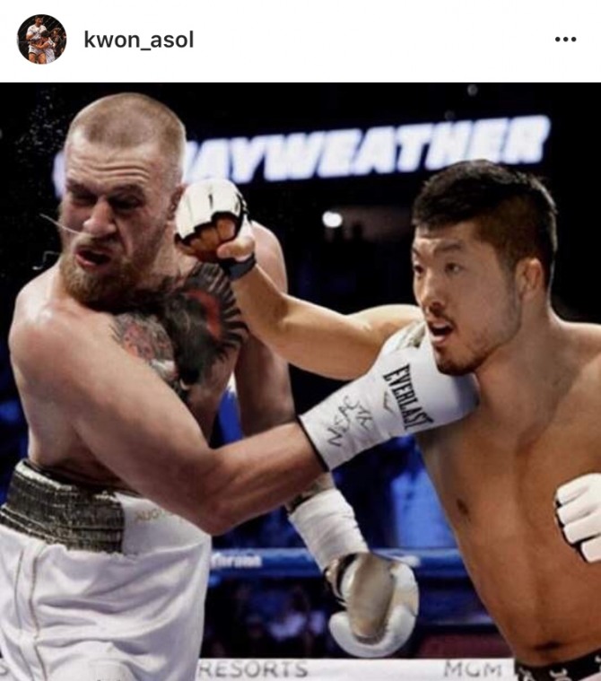 권아솔이 SNS에 본인 얼굴을 합성한 사진을 올리며 맥그리거와 하빕 경기에 불만을 드러냈다. 사진=권아솔 SNS