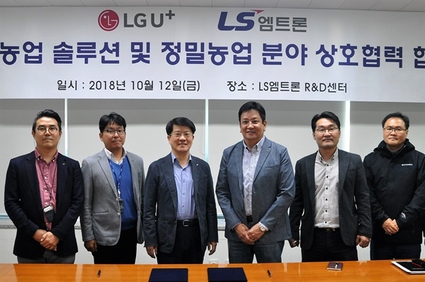 LG유플러스(부회장 하현회)는 지난 12일 LS엠트론(대표 김연수)과 손잡고 이같은 서비스를 하기 위한 ‘스마트 농업 솔루션 및 정밀농업 서비스 구축’ 추진에 대한 양해각서(MOU)를 교환했다고 14일 밝혔다. 두회사는 지난 12일 경기 군포에 위치한 LS엠트론 R&D센터에서 서재용 LG유플러스 미래서비스담당 상무, 우경녕 LS엠트론 기술개발부문장 CTO 등 양사 관계자들이 참석한 가운데 상호 협력을 이행하기 위한 업무협약식을 가졌다.