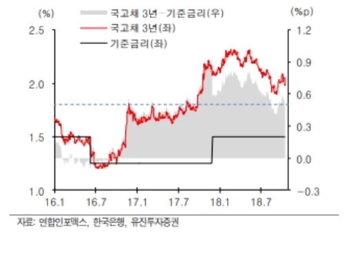 신동수 유진투자증권 연구원은 "완화 기조 장기화로 누적된 금융불균형, 한은의 금리인상 11월 한 차례에 그치지 않을 것”이라며 “변동성 높지만 11월이 한은의 마지막 금리인상이 아니라면 레벨 부담으로 반등이 예상된다”고 말했다.