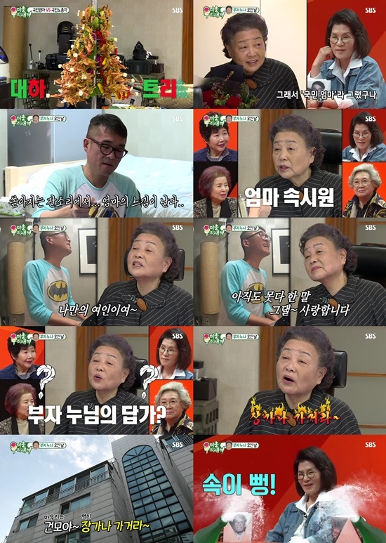 이날 '미우새'에서는 국민 노총각 김건모와 국민 엄마 강부자의 만남이 그려졌다. 김건모는 손수 대하를 기름에 튀겨 야채와 함께 '대하 트리'를 완성, 집에 방문한 강부자를 깜짝 놀라게 했다. 하지만 강부자는 자리에 앉자마자 "이렇게 혼자 있으면 재밌어요?"를 시작으로 초지일관 "장가를 가야지"라는 폭풍 잔소리로 김건모를 진땀나게 만들었다. 반면, 스튜디오에 있던 母벤져스들은 강부자의 사이다 잔소리에 오랜만에 속이 뻥 뚫리는 만족감을 내비쳤다.