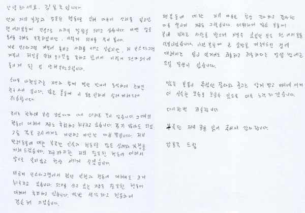 팬들의 분노에 김용국은 '겉 다르고 속 달랐던' 자신의 행동을 후회하며 "입이 열 개여도 죄송하다"고 사과했다. 소속사가 논란에 1차 해명했으나, 김용국은 자필로 쓴 편지를 한 번 더 팬들에게 띄우며 반성의 뜻을 전했다.