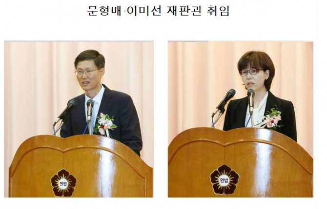 이 재판관도 "국민의 목소리를 정성을 다해 듣고, 사회적 소수자와 약자를 따뜻하게 보듬으며, 국민 곁으로 가까이 다가서는 헌법재판소가 되도록 재판관으로서 소임을 다함으로써 국민과 헌법재판소 가족에 진 빚을 갚겠다"고 말했다.