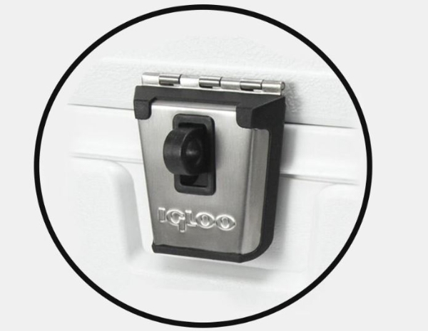 리콜 조치된 이글루 해양 냉각기용 쿨러의 스테인레스 스틸 잠금장치. 사진=미국 소비자 제품 안전위원회(CPSC)