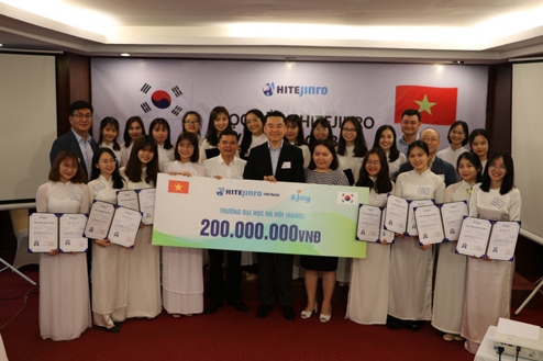 하이트진로 베트남은 지난 9일 하이트진로 장학금 전달식을 하노이에서 열고 하노이대학 한국학과에서 성적이 뛰어난 학생 20명에게 장학금 2억 동을 지급했다.