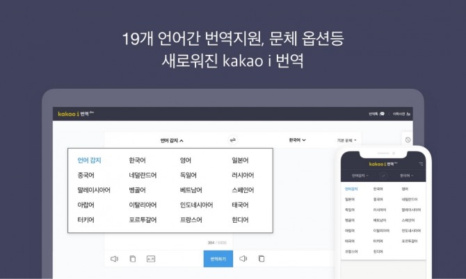 이미지 확대보기카카오는 인공지능(AI) 기반 번역 서비스인 ‘카카오 i 번역’의 언어 종류가 확대되고 번역 품질을 향상했다고 22일 밝혔다.