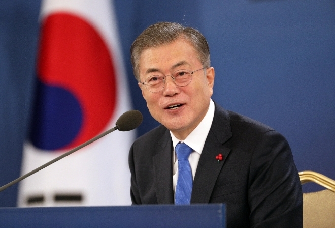 문재인 대통령은 26일 봉준호 감독의 '기생충'이 칸영화제 황금종려상을 수상한 것을 축하하면서 빨리 영화를 보고 싶다고 밝혔다.