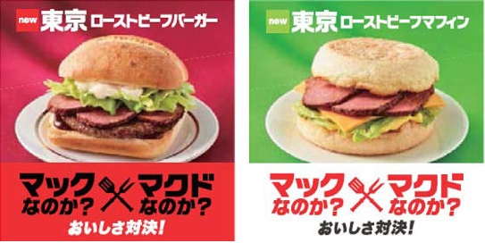 예를 들어 2017년 8월 8일부터 8월 24일까지 방송된 TV광고에서 '육즙이 풍부한 촉촉한 도쿄 로스트 비프 버거'라는 음성과 함께 구운 소 살코기 덩어리를 슬라이스하는 광고를 방송했다.