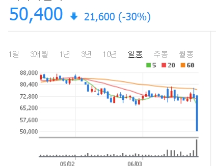 소식에 주가가 급락세를 보이면서 하한가를 기록했다.