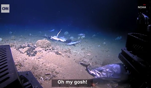 지난달 중순 ODN,CNN 등이 난파선을 찾기 위해 바닷속으로 들어간 미국립해양대기국(NOAA) 심해 연구원들의 카메라에 잡힌 희귀한 모습을 전했다.