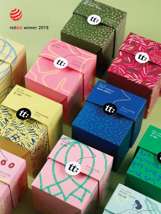 지난해 론칭한 블렌디드티 브랜드 ‘티트라’의 선물상자도 스텐실 기법으로 재해석한 서체와 로고, 차(茶)마다 개성 있는 패턴을 입힌 패키지를 강조해 높은 평가를 받았다.